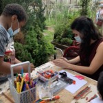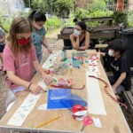 ALF’s Garden Stories project 2021 worked with 3rd graders at Childrens Workshop School to plant a traditional Native American 3 Sisters Garden. They went on to explore Lenape bandolier designs by creating their own individual stoles based on exploring Campos Community Garden plantings for inspiration. Instructors Montana Leonard, Gladys Feliciano and Carolyn Ratcliffe introduced the children to the concepts that this area was inhabited by the Lenape Native Americans before the European settlers arrived. We explored planting practices as to how corn squash and beans planted together compliment one another. The art project explored how the Lenape designs for their clothing decoration was inspired by nature and replicated plants and animals that were part of their everyday life. Each child created their own bandolier stole which they took home with them. We also engaged the children to write and draw their experiences in the garden in notebooks provided by ALF for the project.